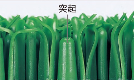 「ハードターフ」の丈夫で長持ちする秘密は、芝が倒れるのを防止する突起が芝の中にあるからです。